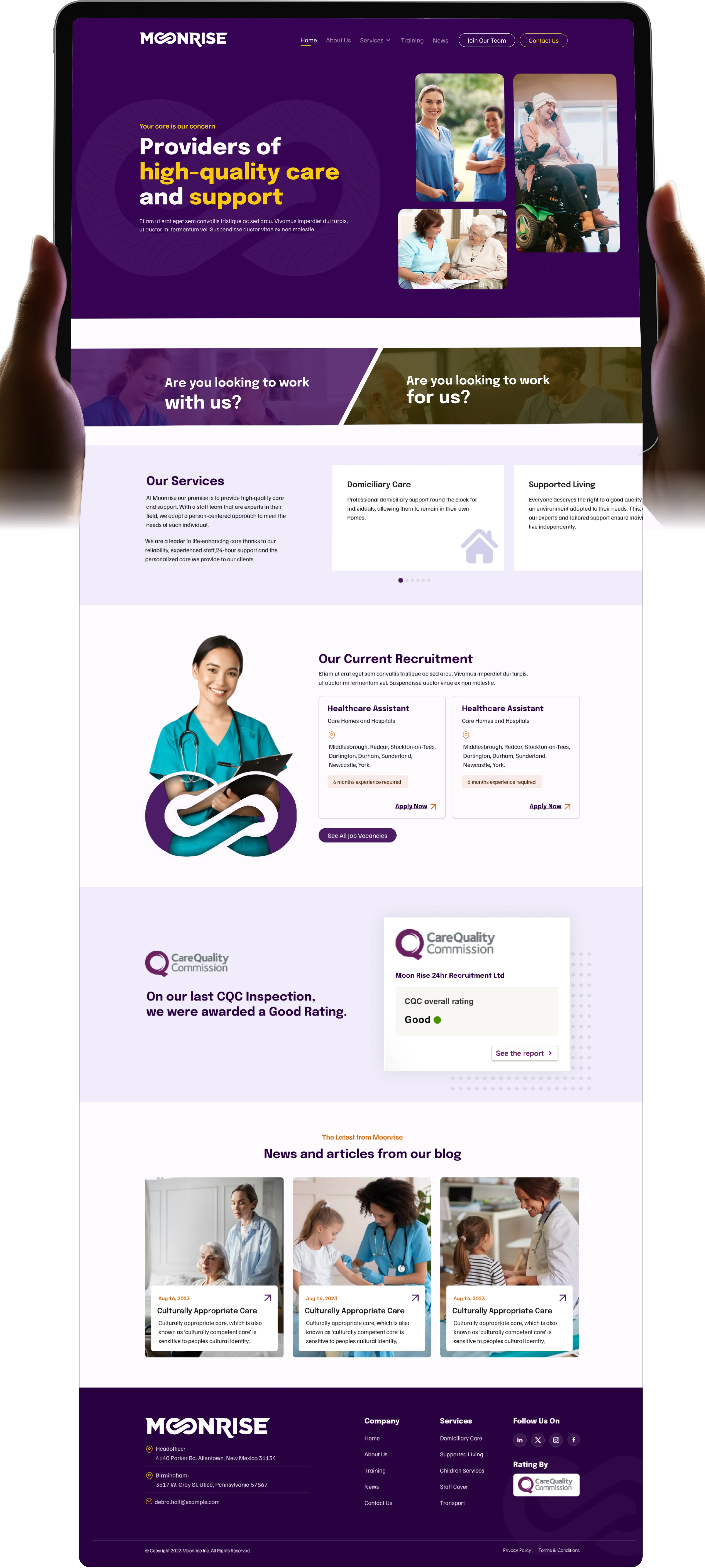 This website was designed to help Moonrise — a trusted healthcare and support service provider — connect individuals seeking reliable care with professionals pursuing fulfilling careers in the healthcare sector.